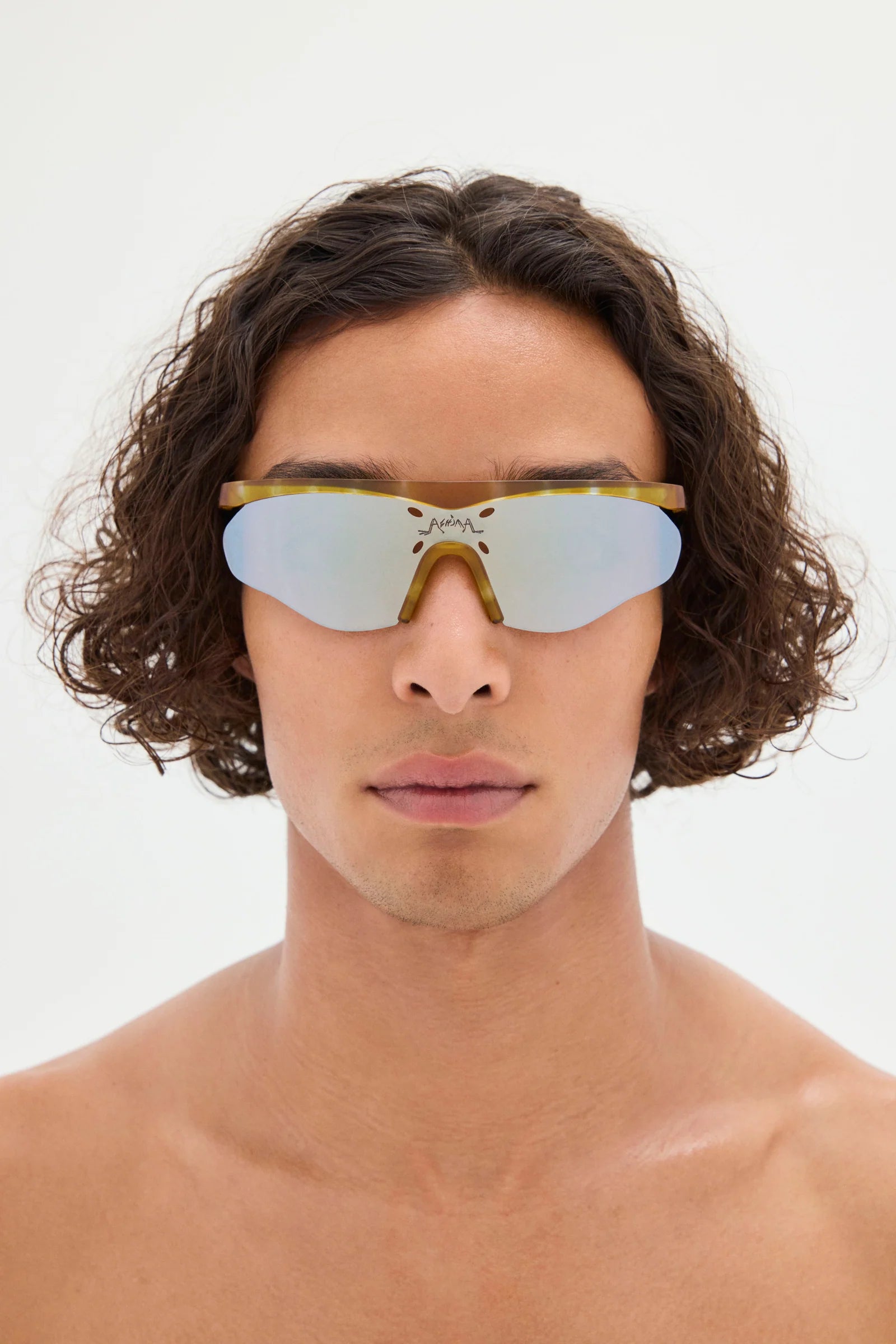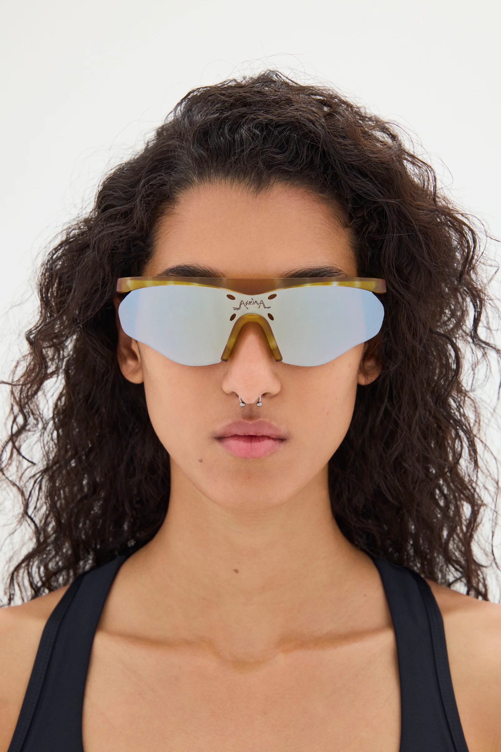 The Ashima Horizon Blade was developed in collaboration with Ashima Shiraishi over two years of iterative testing, focusing on lens geometries optimized for outdoor climbing. Utilizing a 6-base frame construction, the frame incorporates extended peripheral lens coverage for enhanced visual protection. The lens design features four strategically placed ventilation holes near its center, engineered to improve airflow and reduce fogging under dynamic conditions. The 125mm temples are specifically constructed to accommodate helmet use, making the frame suitable for climbing and cycling applications. Adjustable nose pads and temple tips ensure a secure, personalized fit, reinforced with a grade 2 titanium core in the temple tips for added strength. Our signature D+ therapeutic-grade lenses are crafted from a shatterproof polycarbonate compound. The interior surfaces feature anti-reflective and oleophobic coatings, providing comprehensive eye protection while repelling water and oil. The D+ Copper Mirror lens mitigates reflected light and allows 10.03% of visible light transmission, 6.06% of blue light transmission, and blocks 100% of UVA/UVB rays, making it an optimal lens for prolonged outdoor use.