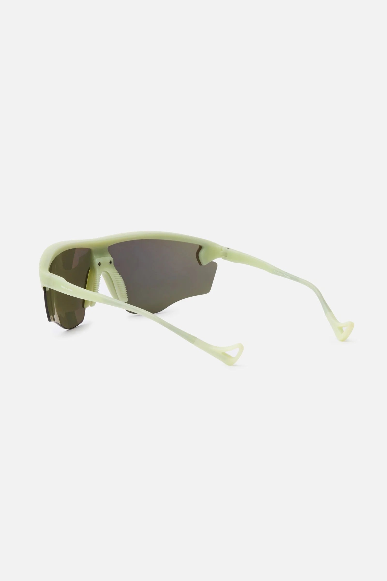 The Junya Racer is a 6 base frame that wraps close to the head for the highest level of visual clarity and protection at speed. Fitted with a hand sculpted lens and custom shaped 125mm temples for running and cycling. Adjustable nose pads and temple tips ensure a secure, personalized fit, reinforced with a grade 2 titanium core in the temple tips for added strength. Our signature D+ therapeutic-grade lenses are crafted from a shatterproof polycarbonate compound. The interior surfaces feature anti-reflective and oleophobic coatings, providing comprehensive eye protection while repelling water and oil. D+ Silver Flash was developed for physical pursuits requiring maximum sun protection. The mirror coating facilitates additional infrared screening. The lens offers 100% UVA/B protection while transmitting 10.29% of visible light and 9.70% of blue light.