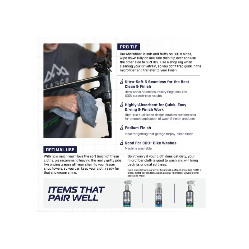 Achieve a showroom finish for your bike with the Formula 100 Ultra-Premium Microfiber Cloth. We’ve meticulously designed it to deliver superior cleaning and finishing results. Our cloth is a detailer’s dream! Finished with laser cut seamless edges on all four sides to avoid scratching your bike’s finish and crafted from an ultra-soft dual-loft microfiber material making our cloth extremely absorbent and gentle to your bike’s finish. This is the ideal shop accessory to pair with Formula 100 products to deliver the cleanest and best-looking results for your bikes.