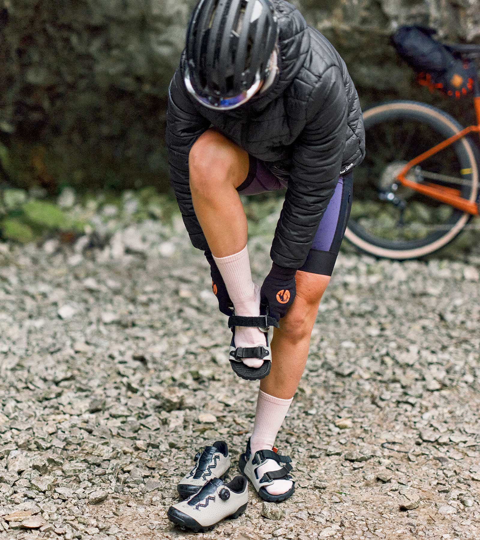 The QUOC x Restrap Sandal is a collaboration that unites two British brands with over two decades of footwear innovation and bikepacking experience between them. Handmade in the UK, it exists to bridge comfort and style with functionality and adventure. The QUOC X Restrap Sandal is designed as the ultimate post-ride slip-on; combining casual comfort with minimalist elegance, with a flair of functionality.